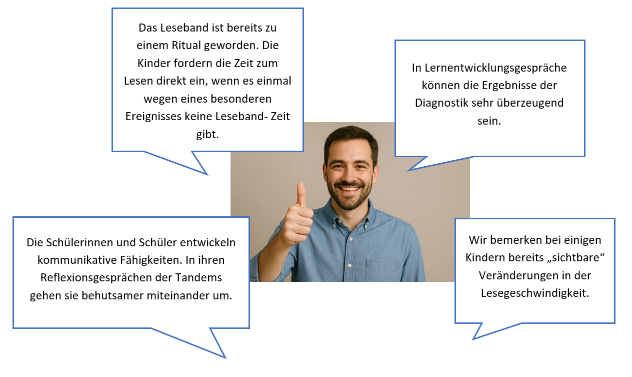 Das LESEBAND ist ein systematisches schulisches Förderformat zur Stärkung basaler Lesekompetenzen in der Grundschule. Durch ein täglich fest verankertes, jahrgangsübergreifendes 20-Minuten-Lesetraining wird vorrangig die Leseflüssigkeit und somit die Lesemotivation mittels strukturierter, evidenzbasierter Methoden kontinuierlich entwickelt und im Schulalltag nachhaltig verankert.