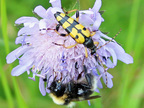 Gefleckter Schmalbock und Wildbiene