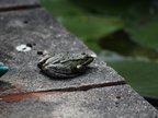 Teichfrosch auf der Mauer