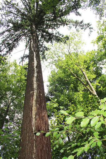 Das Foto gehört zur Serie "Nadelbäume". Es zeigt eine Douglasie mit Blitzwunde. Es gelten die Nutzungsbedingungen der Mediothek und Pixiothek.