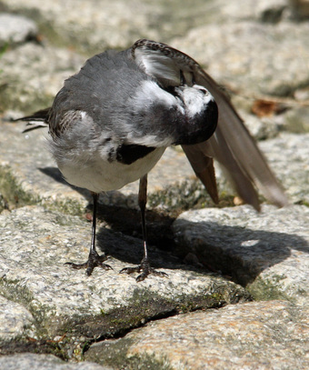 Das Foto gehört zur Serie "Stelzen und Pieper". Es zeigt eine Bachstelze (Motacilla alba). Sie fällt durch ihr kontrastreiches, schwarz-weiß-graues Gefieder und den stelzentypischen Wippschwanz auf. Es gelten die Nutzungsbedingungen der Mediothek und Pixiothek.