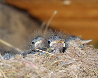 Das Foto gehört zur Serie "Vogelbrut". Es zeigt Jungvögel im Nest. Es gelten die Nutzungsbedingungen der Mediothek und Pixiothek.