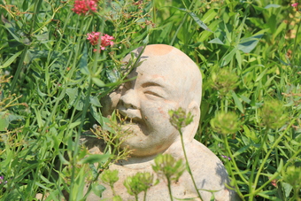 Das Foto zeigt eine Buddha-Statue im Park/Garten. Das Bild ist unter CC0 lizenziert und kann somit frei verwendet werden.