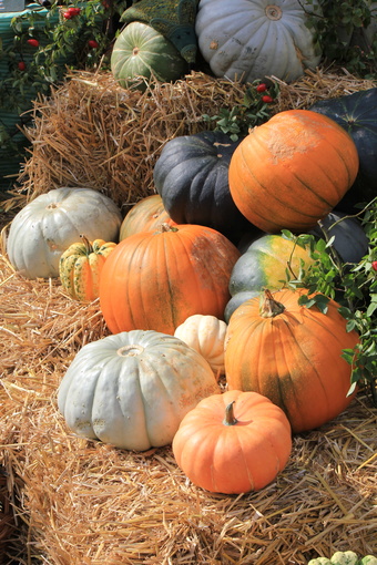 Das Bild gehört zur Serie "Gemüse". Es zeigt Kürbisse verschiedener Färbung. Das Bild ist unter CC0 lizenziert und kann somit frei verwendet werden.