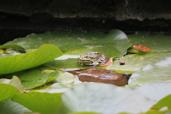 Teichfrosch auf Seerosenblatt