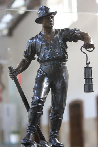 Das Foto zeigt eine Skulptur eines Bergarbeiters aus Bronze. Das Bild ist unter CC0 lizenziert und kann somit frei verwendet werden.