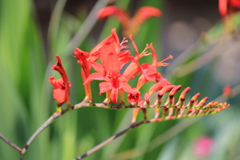 Das Foto zeigt Blüten der Gold-Montbretie (Crocosmia aurea), einer Pflanzenart aus der Gattung der Montbretien (Crocosmia) in der Familie der Schwertliliengewächse. Das Bild ist unter CC0 lizenziert und kann somit frei verwendet werden.