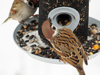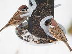 Haussperlinge am Futterspender
