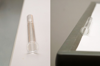 Das Foto gehört zur Serie "Experimente Chemie". Es zeigt links einen Experimentiertisch ohne und rechts einen mit Randerhöhung. Ohne Randerhöhung kann ein Reagenzglas herunterfallen. Das Bild ist unter CC0 lizenziert und kann somit frei verwendet werden.