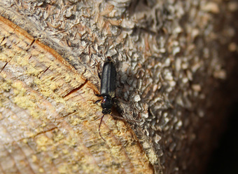 Das Foto hehört zur Serie "Bockkäfer". Es zeigt einen Düsterbock (Asemum striatum), einen Käfer aus der Familie der Bockkäfer. Es gelten die Nutzungsbedingungen der Mediothek und Pixiothek.