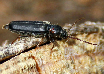 Das Foto hehört zur Serie "Bockkäfer". Es zeigt einen Düsterbock (Asemum striatum), einen Käfer aus der Familie der Bockkäfer. Es gelten die Nutzungsbedingungen der Mediothek und Pixiothek.
