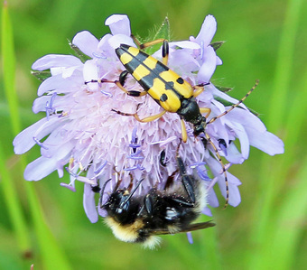 Gefleckter Schmalbock und Wildbiene