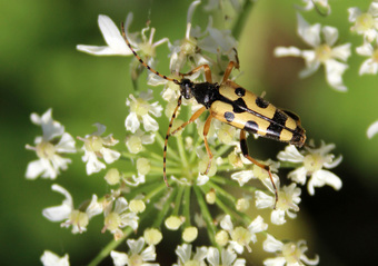 Das Foto hehört zur Serie "Bockkäfer". Es zeigt einen Gefleckten Schmalbock (Rutpela maculata) einen Käfer aus der Familie der Bockkäfer. Es gelten die Nutzungsbedingungen der Mediothek und Pixiothek.