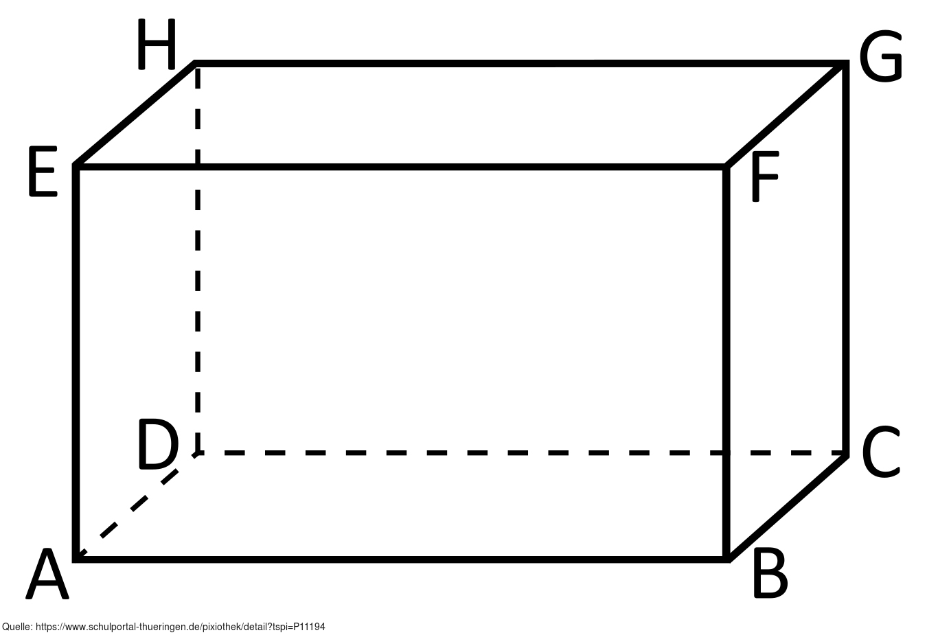 Das Bild hehört zur Serie "Geometrie Körper". Es zeigt das Schrägbild eines Quaders. Diese Darstellung wird auch Kavalierperspektive genannt. Das Bild ist unter CC0 lizenziert und kann somit frei verwendet werden.