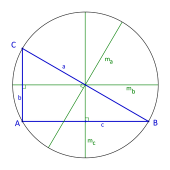 Das Bild gehört zur Serie "Mathematik Geometrie". Es zeigt die drei Mittelsenkrechten in einem rechtwinkligen Dreieck. Die Mittelsenkrechten schneiden sich in einem Punkt. Das ist der Mittelpunkt vom Umkreis des Dreiecks. Das Bild ist unter CC0 lizenziert und kann somit frei verwendet werden.