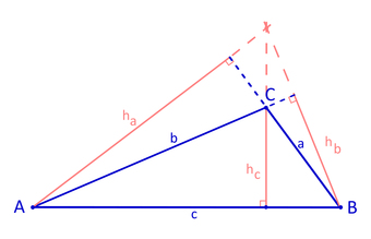 Das Bild gehört zur Serie "Mathematik Geometrie". Es zeigt die drei Höhen in einem stumpfwinkligen Dreieck. Die Höhen schneiden sich in einem Punkt. Das Bild ist unter CC0 lizenziert und kann somit frei verwendet werden.