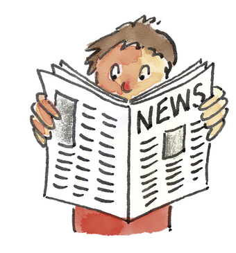 Das Bild zeigt einen gezeichneten Jungen beim Lesen einer Zeitung. Es gelten die Nutzungsbedingungen der Mediothek und Pixiothek.