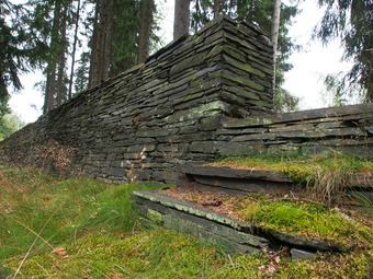Thüringischer Schieferpark Lehesten: Trockenmauer aus Schiefer