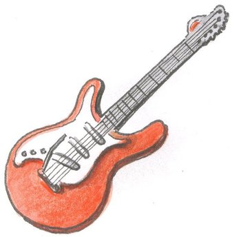 Das Bild gehört zur Serie "Musikinstrumente". Es zeigt eine gezeichnete E-Gitarre. Es gelten die Nutzungsbedingungen der Mediothek und Pixiothek.