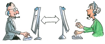 Das Bild gehört zur Serie "Lernformen". Es zeigt ein gezeichnetes Symbolbild für die Lernform E-Learning. Es gelten die Nutzungsbedingungen der Mediothek und Pixiothek.