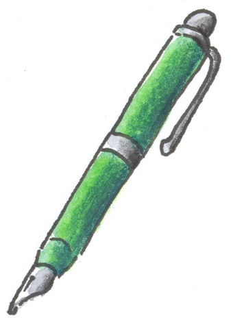 Das Bild gehört zur Serie "Schreibwaren". Es zeigt einen gezeichneten Füllfederhalter, auch Füllhalter, Füllfeder oder Füller genannt. Es gelten die Nutzungsbedingungen der Mediothek und Pixiothek.