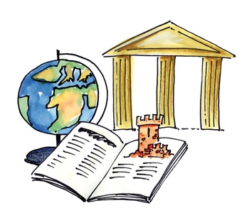 Das Bild gehört zur Serie "Schulfächer". Es zeigt ein gezeichnetes Symbolbild für die Fächergruppe Gesellschaftswissenschaften (GeWi). Es gelten die Nutzungsbedingungen der Mediothek und Pixiothek.
