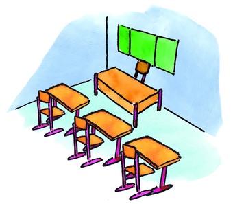 Das Bild gehört zur Serie "Unterricht". Es zeigt einen gezeichneten Klassenraum. Es gelten die Nutzungsbedingungen der Mediothek und Pixiothek.