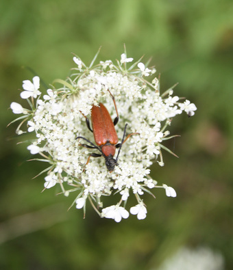 Das Foto gehört zur Serie "Bockkäfer". Es zeigt einen Rothalsbock (Stictoleptura rubra), auch Roter Halsbock oder Gemeiner Bockkäfer genannt. Er gehört zur Familie der Bockkäfer. Es gelten die Nutzungsbedingungen der Mediothek und Pixiothek.