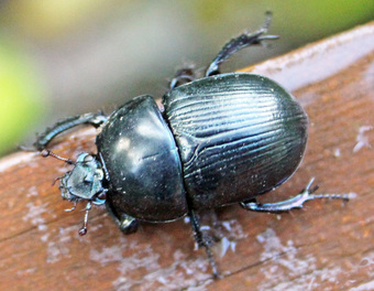 Das Foto hehört zur Serie "Käfer". Es zeigt einen Gemeinen Mistkäfer oder Rosskäfer (Geotrupidae) aus der Familie der Mistkäfer. Es gelten die Nutzungsbedingungen der Mediothek und Pixiothek.
