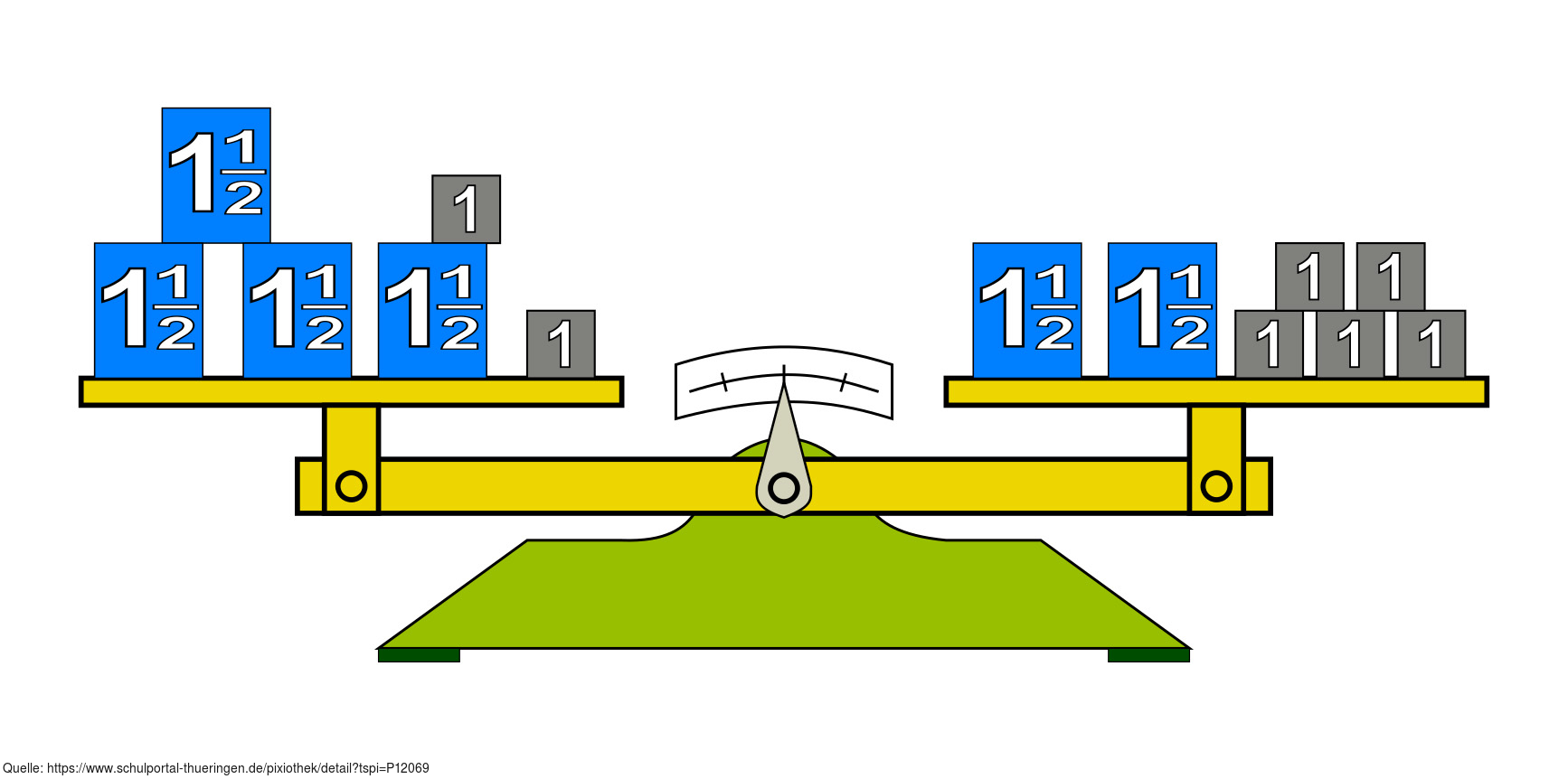 Das Bild gehört zur Serie "Mathematik, Gleichungen". Es veranschaulicht die Probe für die Lösung der linearen Gleichung 25. Durch Einsetzen der gefundenen Lösung für die Variable x entsteht im Bild auf beiden Seiten der Waage die gleiche Summe. Das Bild ist unter CC0 lizenziert und kann somit frei verwendet werden.