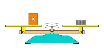 Das Bild gehört zur Serie "Mathematik, Gleichungen". Es veranschaulicht die Lösung einer linearen Gleichung durch Äquivalenzumformung mit dem Bild einer Waage. Zur Gleichung 13 (3x - 1 = 5) veranschaulichen die Bilder 13-1 bis 13-4 die Umformungsschritte. Das Bild ist unter CC0 lizenziert und kann somit frei verwendet werden.