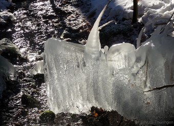 Das Bild zeigt vereiste Äste über einem Bach. Es gelten die Nutzungsbedingungen der Mediothek und Pixiothek.