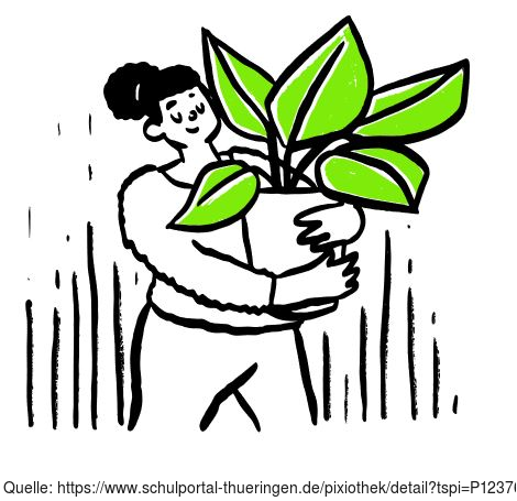 Die Zeichnung "plant" aus der Serie "Open Doodles" zeigt eine Frau, die einen Blumentopf mit Pflanze trägt. Das Bild ist unter CC0 lizenziert und kann somit frei verwendet werden.