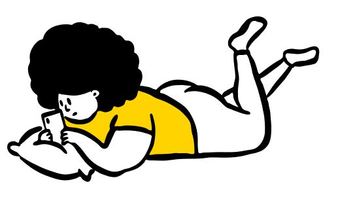 Die Zeichnung "laying-down" aus der Serie "Open Doodles" zeigt eine Frau auf dem Bauch liegend ihr Handy benutzen. Das Bild ist unter CC0 lizenziert und kann somit frei verwendet werden.