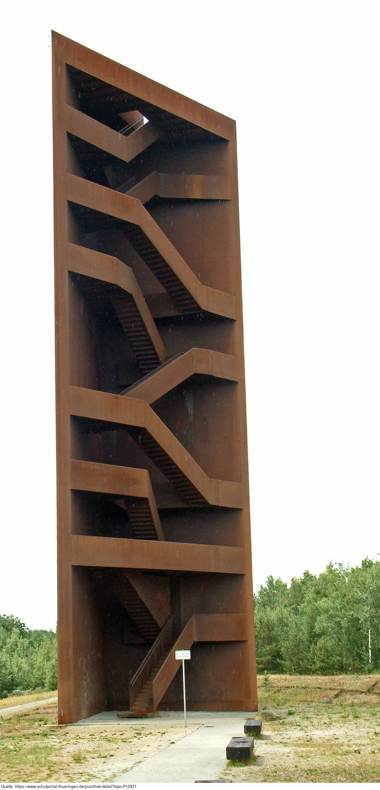 Das 2011 aufgenommene Foto zeigt die Landmarke Lausitzer Seenland, einen aus 111 Tonnen Cortenstahl errichteten Aussichtsturm nahe Senftenberg.