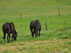 Schwarze Pferde auf der Weide