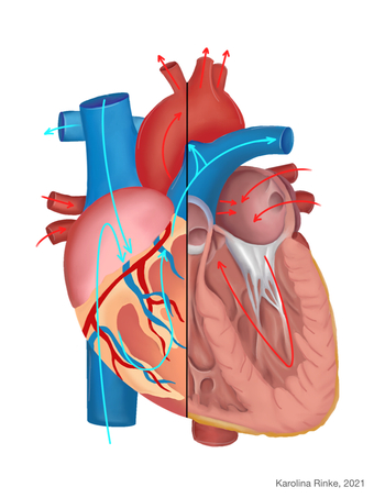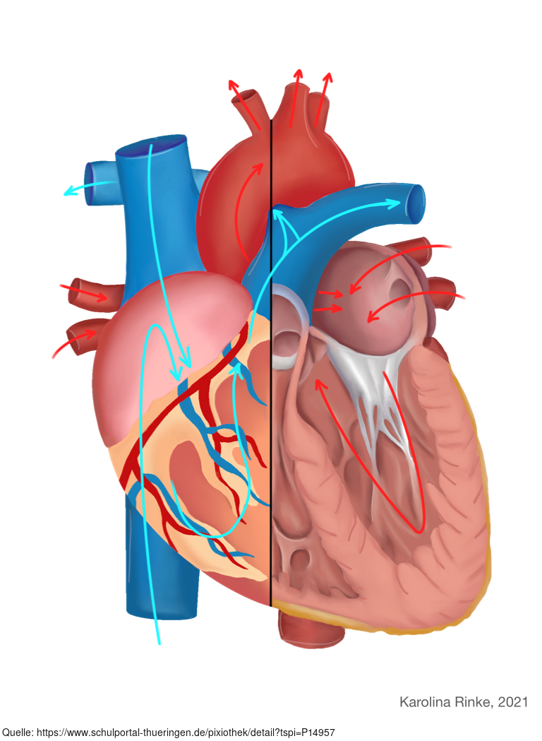 Das Bild gehört zur Serie "Organe des Menschen". Das Bild verdeutlicht den Aufbau des menschlichen Herzens. Bild-Variante: Herz mit Blutstrom; farbig; unbeschriftet. Es gelten die Nutzungsbedingungen der Mediothek und Pixiothek.
