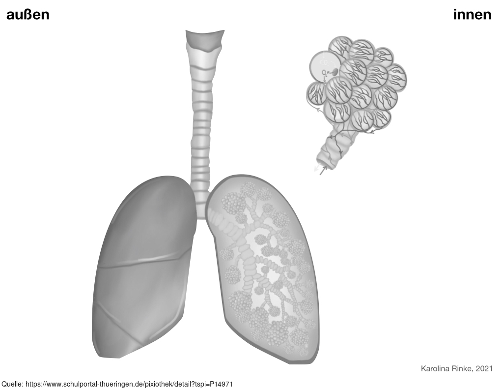 Das Bild gehört zur Serie "Organe des Menschen". Das Bild verdeutlicht den Aufbau der menschlichen Lunge. Bild-Variante: Lungenbläschen; s/w. Es gelten die Nutzungsbedingungen der Mediothek und Pixiothek.