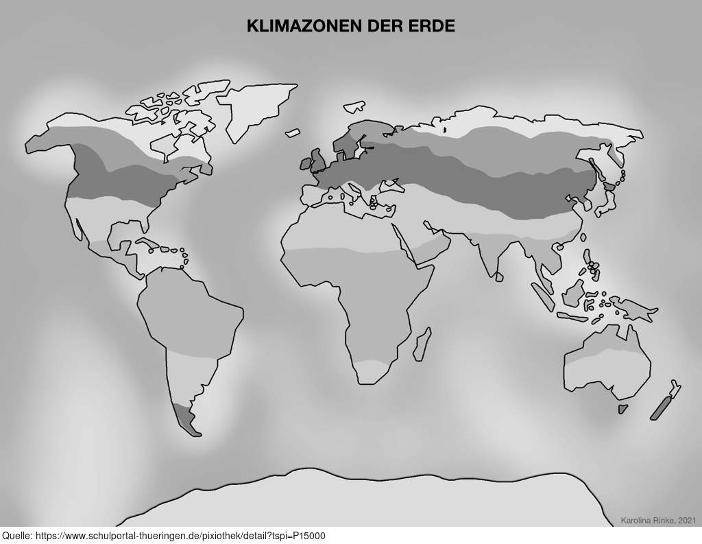 Das Bild verdeutlicht die Lage der Klimazonen der Erde. Bild-Variante: s/w; unbeschriftet. Es gelten die Nutzungsbedingungen der Mediothek und Pixiothek.