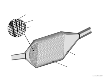 Das Bild gehört zur Serie "Fahrzeugkatalysator". Es verdeutlicht den Aufbau eines Katalysators in einem Fahrzeug mit Verbrennungsmotor. Bild-Variante: s/w; unbeschriftet. Es gelten die Nutzungsbedingungen der Mediothek und Pixiothek.