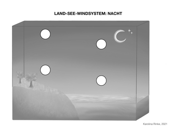 Das Bild gehört zur Serie „Zirkulationssysteme der Erde“. Es verdeutlicht das Land-See-Windsystem der Erde. Bild-Variante: s/w; unbeschriftet; Nacht. Es gelten die Nutzungsbedingungen der Mediothek und Pixiothek.
