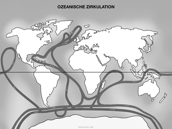 Das Bild gehört zur Serie „Zirkulationssysteme der Erde“. Es verdeutlicht die ozeanische Zirkulation. Bild-Variante: s/w; unbeschriftet. Es gelten die Nutzungsbedingungen der Mediothek und Pixiothek.