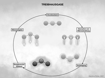 Das Bild verdeutlicht das Thema Treibhausgase. Bild-Variante: s/w; teilweise beschriftet. Es gelten die Nutzungsbedingungen der Mediothek und Pixiothek.