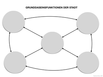 Das Bild verdeutlicht die Grunddaseinsfunktionen (der Stadt). Bild-Variante: leere Vorlage. Es gelten die Nutzungsbedingungen der Mediothek und Pixiothek.