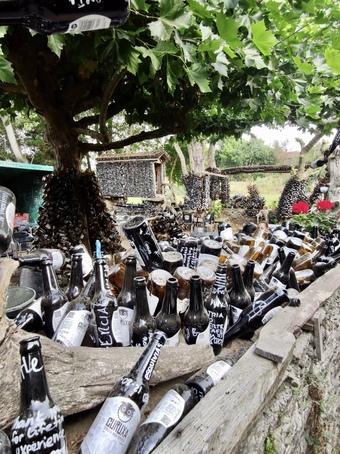Das Bild gehört zur Serie "Jakobsweg - Camino Francés". Abgebildet sind zahlreiche Bierflaschen, in einem "Biergarten" an Wegesrand. Es gelten die Nutzungsbedingungen der Mediothek und Pixiothek.