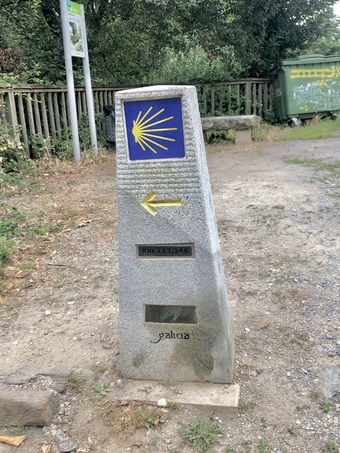 Das Bild gehört zur Serie "Jakobsweg - Camino Francés". Abgebildet ist ein Wegweiser am Pilgerweg. Es gelten die Nutzungsbedingungen der Mediothek und Pixiothek.