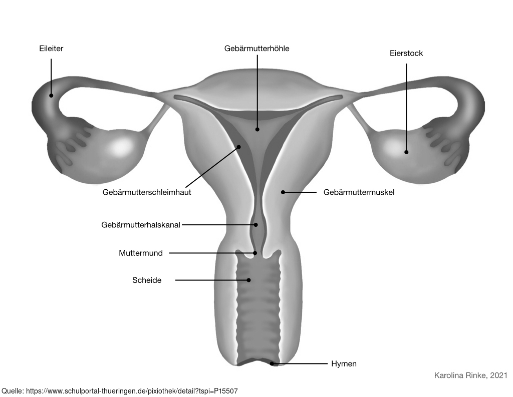 Das Bild gehört zur Serie "Organe des Menschen". Das Bild verdeutlicht den Aufbau der menschlichen Gebärmutter. Bild-Variante: s/w; beschriftet. Es gelten die Nutzungsbedingungen der Mediothek und Pixiothek.