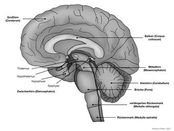 Das Bild gehört zur Serie "Organe des Menschen". Das Bild verdeutlicht den Aufbau des menschlichen Gehirns. Bild-Variante: s/w; beschriftet. Es gelten die Nutzungsbedingungen der Mediothek und Pixiothek.