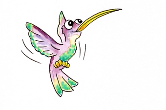 Das Bild gehört zur Serie "Witzige Fakten über Tiere". Es zeigt einen gezeichneten Kolibri. Der ursprüngliche Begleittext aus dem Projekt der Urheberin lautet so: "Energetische Kolibris. Kolibris können ihre Flügel bis zu 200 Mal pro Sekunde schlagen, was so viel Energie verbraucht, dass sie jeden Tag bis zum Achtfachen ihres eigenen Körpergewichts fressen müssen." Die Zeichnerin kann bei Twitter über @_Lautes_Denken kontaktiert werden. Für das Bild gelten die Nutzungsbedingungen der Mediothek und Pixiothek.