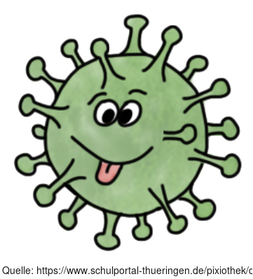 Die Zeichnung zeigt ein Symbolbild für einen Virus. Das Bild ist unter CC0 lizenziert und kann somit frei verwendet werden. Es ist neben weiteren Bildern auch hier zu finden: https://moodlelab.moodleschule.de/
